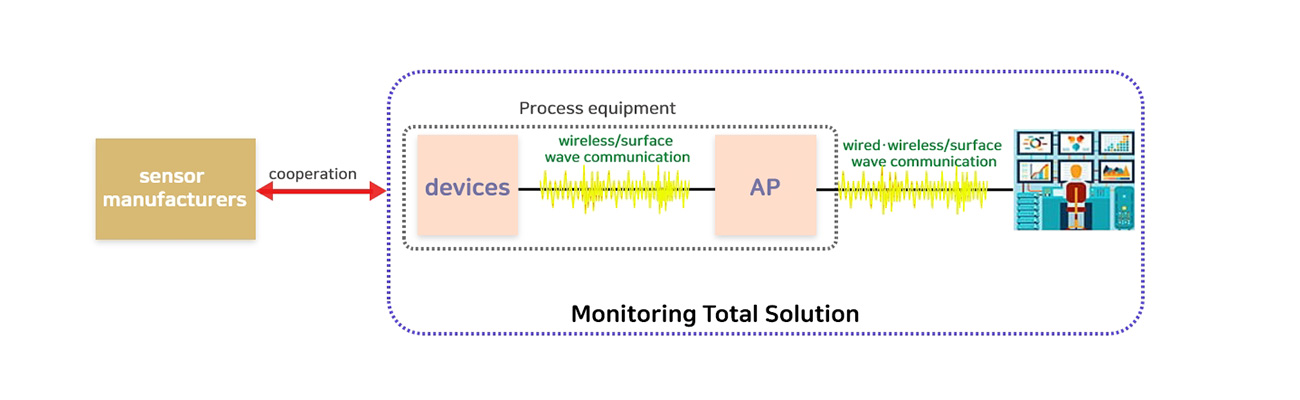 A data monitoring system that applies extreme IoT technologies using surface wave communication in metallic chambers that limit wireless communication, and supports malfunction detection, classification and data analysis.